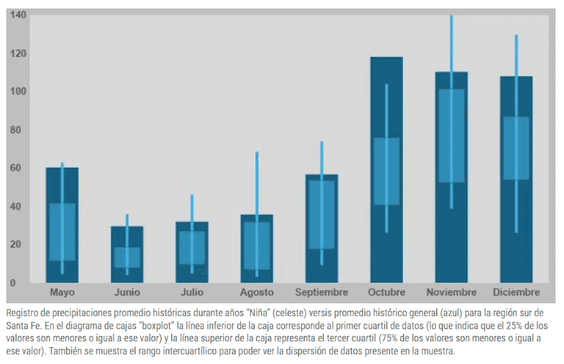“La Niña también tiene influencia en las temperaturas, las cuales suelen ser más favorables para los cereales de invierno en comparación a lo que sucede en los eventos El Niño”, remarcó.
