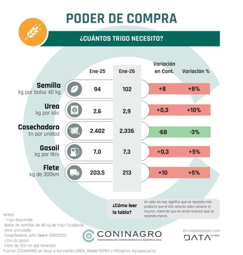 La reciente edición del informe Insumo-Producto de CONINAGRO revela que la baja en los precios del trigo deteriora fuertemente su poder de compra frente a los principales costos de producción y logística, en un escenario desafiante para los productores argentinos.