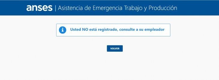 En caso de que no corresponda, ya sea porque el empleador nunca se anotó o porque tras inscribirse no cumplió con los requisitos, el mensaje será: