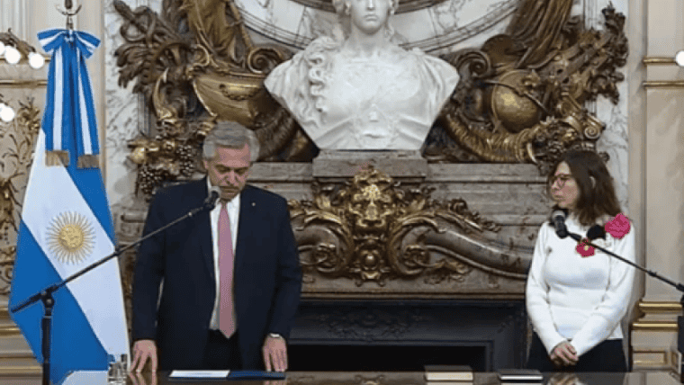 El presidente Alberto Fernández le tomó juramente esta tarde en Casa Rosada a la flamante ministra de Economía, Silvina Batakis, quien reemplazará en el cargo a Martín Guzmán, tras su renuncia del sábado por la tarde. En su llegada, fue recibida con muchos aplausos por parte de los referentes del Gobierno. La jura se llevó a cabo en el Salón Blanco de Casa Rosada.