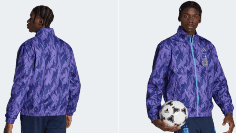 En su página oficial, Adidas detalla que fue diseñada para ser vista en el escenario más importante del fútbol. "Esta campera adidas reversible luce los colores titular de Argentina en el exterior y el estampado de camiseta visitante en el interior", detalla la descripción.