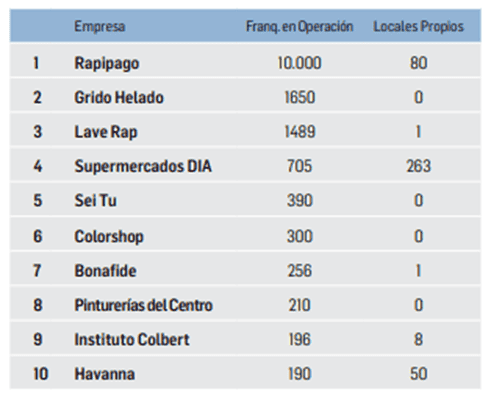 Ranking de las empresas con más locales franquiciados