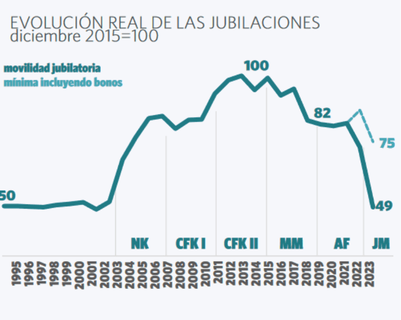 En relación a los haberes jubilatorios, por la inflación, incluso con el bono adicional, la mínima cayó 14% respecto a diciembre de 2022 señalan desde MATE.