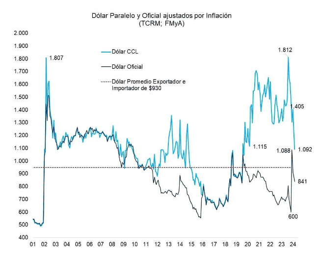 Para ponerlo en perspectiva, la inflación ha rondado el 36% en lo que va del año, mientras que la subida del dólar apenas llega al 13%. Esto traduce una inflación en dólares del 21%, haciendo que los productos y servicios argentinos medidos en esta moneda sean un 21% más caros. Si esta tendencia persiste, la inflación en dólares podría alcanzar el 124% al final del año, una cifra difícil de digerir.
