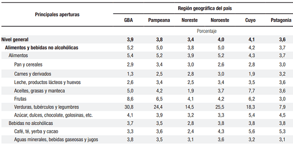 A nivel de las categorías, Estacionales (9,0%) fue la de mayor incremento en enero. "Lo más relevante en la división fue el incremento de Verduras, tubérculos y legumbres, donde se destacaron el tomate, la lechuga, la papa y la cebolla, entre otras. También sobresalió dentro de la división el alza de Frutas, especialmente el limón y la naranja", aseguró el INDEC.