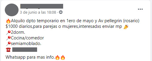 Tampoco hay que dejar de lado los grupos de Facebook para alquilar por dueño directo, donde cada vez más personas ofrecen sus inmuebles para contratos cortos. A través de posteos, muestran algunas fotos del lugar, los servicios con los que cuenta y el precio por noche o por estadía mensual, más número de contacto para posibles interesados.