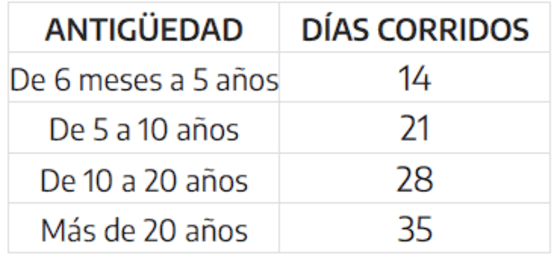 Las vacaciones deben ser abonadas antes de su inicio. La retribución equivale al monto que hubiera cobrado el trabajador de haber trabajado normalmente. La cantidad de días de vacaciones se calcula dependiendo de la antigüedad: