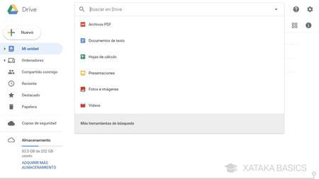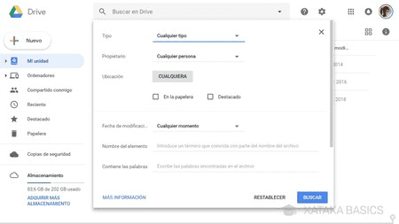 Las búsquedas simples de por sí ya te van a ayudar a ahorrar mucho tiempo buscando cosas, pero ¿qué pasa cuando tienes demasiados archivos o no conoces el nombre exacto de lo que buscas? Pues que puedes utilizar el buscador avanzado de Google Drive para localizar documentos con otros parámetros además de su nombre.