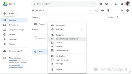 - En el menú emergente, pulsa en Obtener enlace para compartir