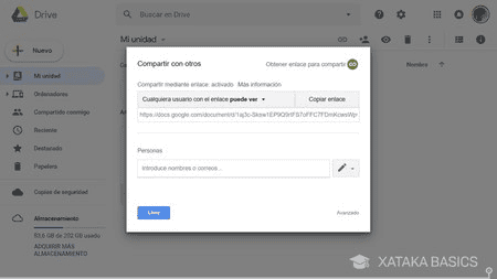- Se te abrirá una ventana con el enlace que tienes que compartir con quien quieras que vea el documento