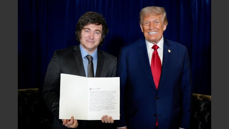 El Presidente Javier Milei recibió por parte del Presidente de los Estados Unidos, Donald Trump, la publicación impresa en la red social Truth donde expresa su apoyo al Gobierno Nacional.