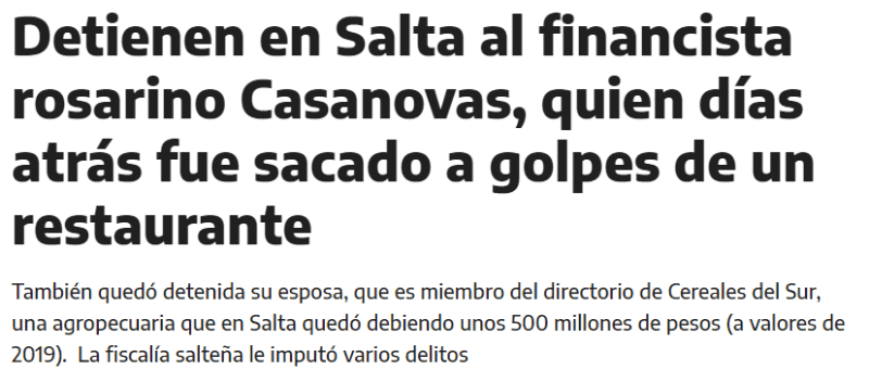 Casanovas se volvió viral día antes de la detención tras haber sido identificado por una presunta víctima en un restaurante. El damnificado, un productor agropecuario, insultó al financista, le pidió que se retirara del lugar y luego le pegó una piña en la cara al presunto estafador.