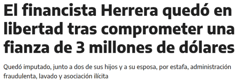 La primera de las denuncias se presentó en 2021 y según se indicó Herrera tomaba los dólares de los inversores y los colocaba en el mercado de futuros ofreciendo tasas de interés mayores a la usual. Pero en un momento dejó de devolver los dólares a los ahorristas, se indicó en la denuncia.