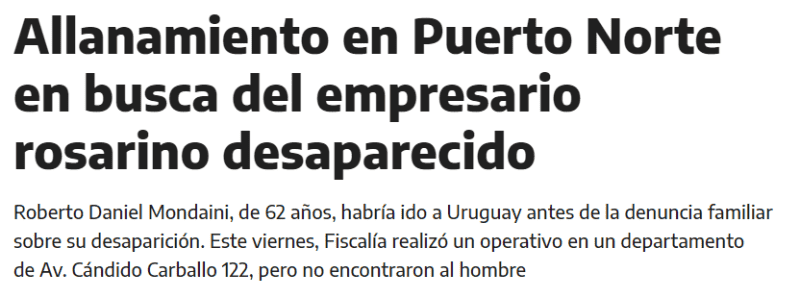 El empresario salió del país el 22 de agosto con destino a Uruguay y según la denuncia lo hizo con dinero de ahorristas. La fiscalía registró alrededor de 300 inversores damnificados, alcanzando cifras millonarias y en divisas extranjeras. Mondaini manejaba fondos de ahorristas y los movía en diferentes inversiones bursátiles, además de cambiar divisas y participar en otras empresas. Los allanamientos fueron ordenados por la fiscalía de Delitos Económicos, a cargo del fiscal Sebastián Narvaja.