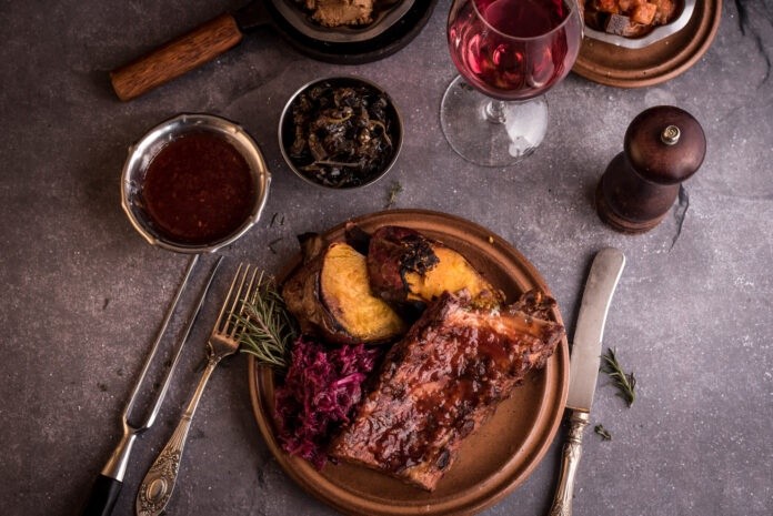 Rouge: ojo de bife ahumado y madurado, con papas y coliflor.