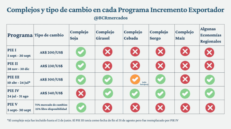 Fuentes importantes del sector reconocieron a Ecos365 que la medida está en carpeta y en las próximas horas podría ser oficializada. Cabe recordar que la última versión del Programa de Incremento Exportador (PIE) permitió liquidar el 75% a dólar oficial y el 25% restante fue otorgado para libre disponibilidad