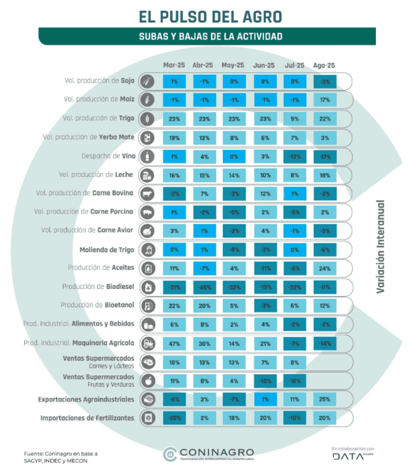 Cabe recordar que durante agosto las tasas de interés se incrementaron con fuerza, encareciendo el costo de financiamiento y afectando indirectamente el nivel productivo. En ese marco, desde Coninagro sostienen que no debería sorprender que el próximo informe presente un cuadro menos favorable que el actual.