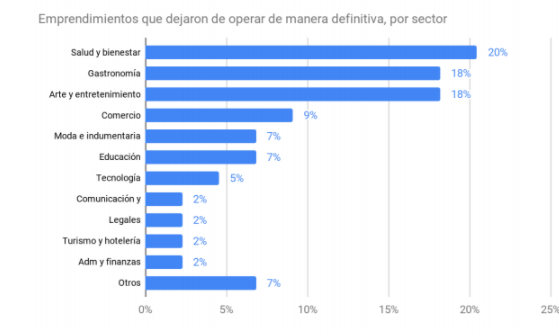 Según el informe, los proyectos relacionados a salud y bienestar, gastronomía, arte y entretenimiento aparecen como los más afectados por la pandemia y son los que manifestaron la tasa de cierre más elevada.