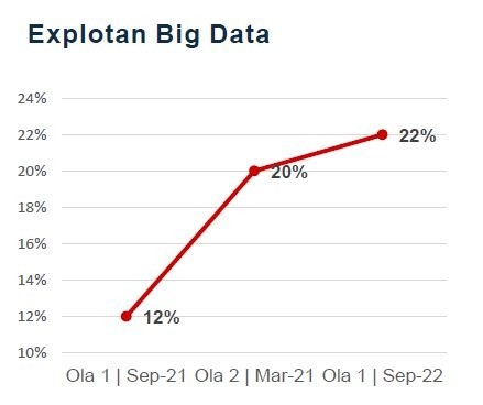 Aproximadamente el 90% de las empresas ya tienen conectividad a Internet, el 43% realiza ventas por eCommerce, 30% utilizan servicios en la nube, 47% utilizan Internet de las Cosas (IoT) y 22% explotan Big Data. Esto último marcó una gran diferencia versus la primera medición del IID donde solo el 12% hacía uso de estas herramientas para conocer el negocio o potenciarlo.