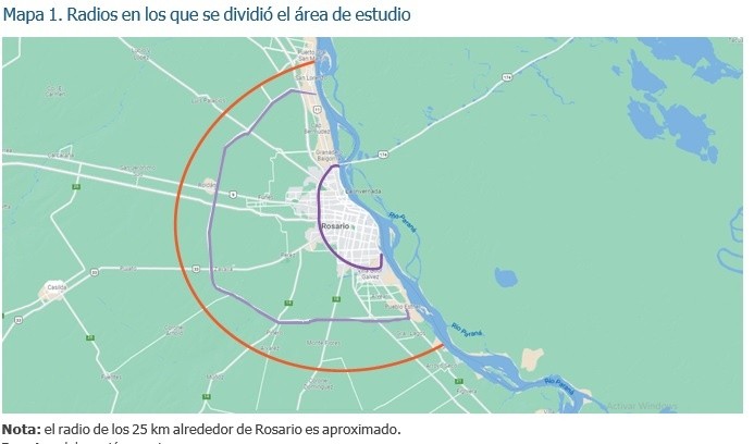 El 70% de la superficie total de los Galpones relevados que se encuentran alquilados se localiza en el radio Urbano con un tamaño promedio de naves de 1.985 m². El 30% de la superficie restante (27.420 m²) se encuentra en el primer radio, siendo el tamaño promedio de las naves de 2.742 m², significativamente superior a los del radio urbano, de acuerdo al trabajo realizado por el Colegio de Corredores Inmobiliarios de Rosario (COCIR) y la Universidad Nacional de Rosario (UNR).