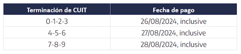Calendario de vencimientos agosto y septiembre