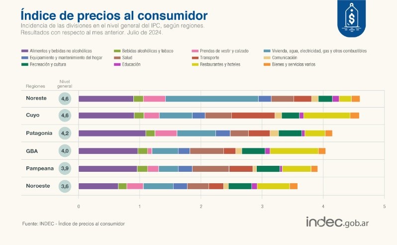 El índice publicado hoy sigue al 4,6% que había anotado en junio, en lo que fue la primera aceleración de los datos mensuales desde el cambio de Gobierno. Previo a esa escalada, el IPC había marcado 4,2% en mayo, 8,8% en abril, 11% en marzo, 13,2% en febrero, 20,6% en enero y el récord de los últimos 30 años de 25,5% del último mes del año pasado.