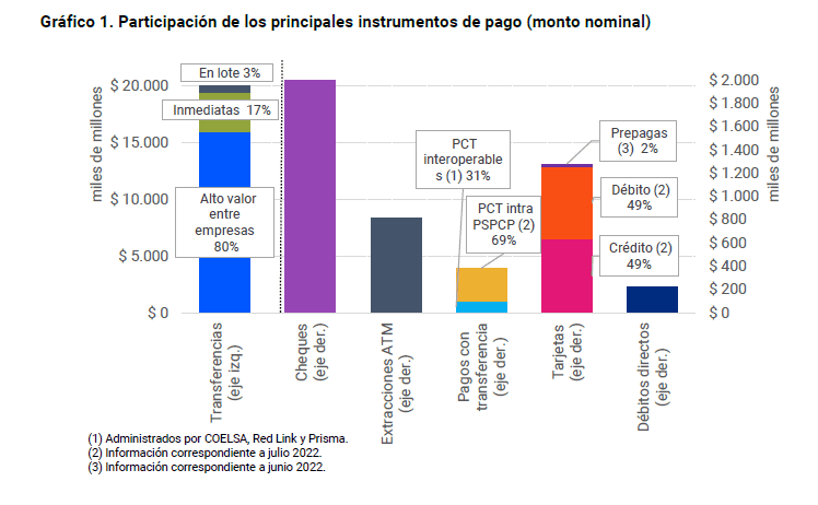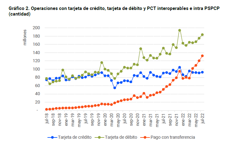 Del mismo modo, los PCT efectuados dentro de un mismo esquema (no interoperables) también evidencian un alto dinamismo: en julio (último dato disponible) alcanzaron los 106,5 millones de pagos por $280,6 mil millones, con crecimientos interanuales del 194,6% en cantidades y del 160,4% en montos.