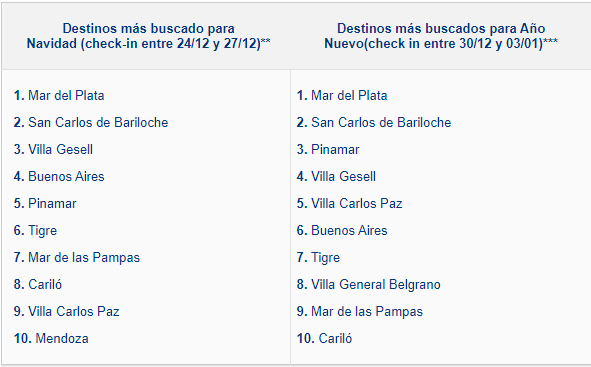 Este año las fiestas caen jueves y viernes, lo que da una gran oportunidad para aprovechar y realizar una escapada para volver a recorrer el país, siguiendo las medidas y protocolos de seguridad. En este marco, los destinos más buscados por los argentinos para Navidad y Año Nuevo son: