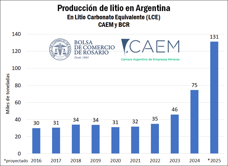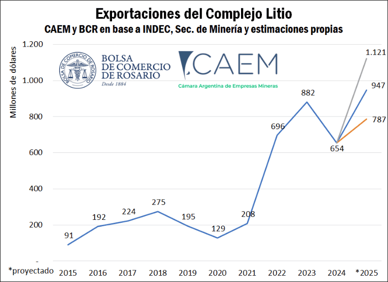 Fruto del trabajo conjunto entre la Cámara Argentina de Empresas Mineras (CAEM) y la Bolsa de Comercio de Rosario (BCR), se presenta por primera vez una estimación anual de las exportaciones de litio de la República Argentina. Esta proyección busca aportar previsibilidad y transparencia a uno de los sectores estratégicos para el desarrollo económico argentino, en un contexto de creciente demanda global por minerales críticos para la transición energética.