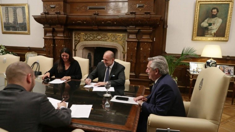 Luego de largas negociaciones, finalmente el presidente Alberto Fernández y el gobernador Omar Perotti firmaron el acuerdo para el pago de la histórica deuda que Nación mantiene con Santa Fe por la detracción indebida de fondos de la coparticipación. Sin embargo la oposición planteó una serie de dudas respecto a las condiciones del convenio.