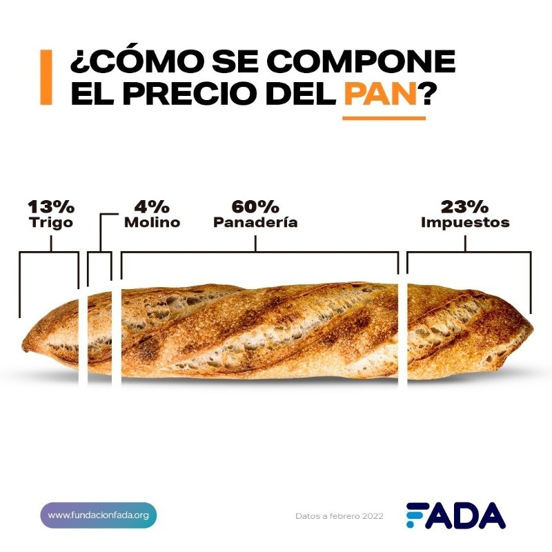 “A lo largo de toda la cadena la mano de obra representa el 34% del precio final, acumulado en gran parte en el sector panadero. Por cada kilo de pan que un consumidor compra, paga $70 de salarios, $47 de impuestos y sólo $26 de trigo”, explican desde FADA.