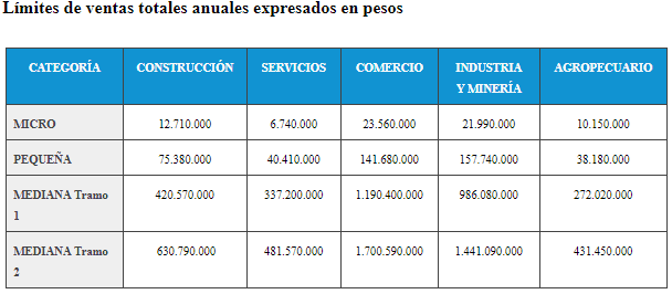 Para el sector de industria, por ejemplo, ahora se considera una microempresa la que facture en promedio durante los últimos años hasta $21.990.000, una pequeña hasta $157.740.000; una mediana tramo 1 hasta $986.080.000 y una mediana tramo dos hasta $1.441.090.000.