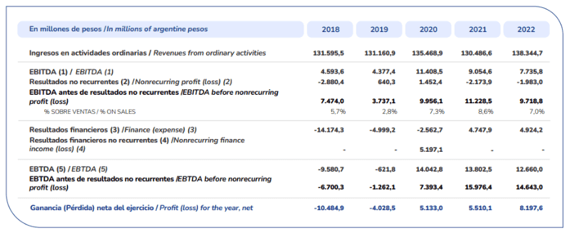 En cuanto a la diferencia entre el ingreso y el costo de ventas, 2022 presentó una ganancia bruta de 47.516.880.000 pesos frente a los 46.156.671.000 pesos de 2021. Pero en 2021 contó con gastos de comercialización superiores en 1,6 mil millones de pesos; gastos de administración por 800 mil pesos; y costos financieros por 1,2 mil millones de pesos.