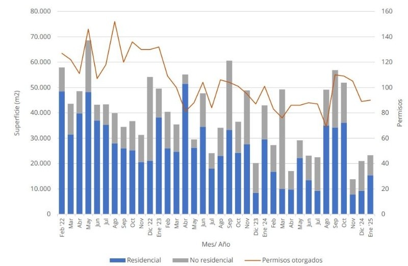 - Se aprobaron solo 23.261 metros cuadrados de construcción, un 45,9% menos que en enero de 2024.