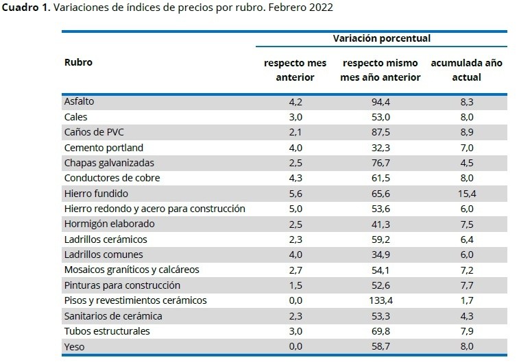 Otro insumo básico que no para de subir es el hierro, que en febrero tuvo una variación del 5,6% y ya venía de un año récord. “Lo que no deja de llamar la atención es que en este caso los aumentos son fuertes y en dólares”, apuntó Fortuna. “La suba del hierro tiene que ver un poco con la realidad nacional e internacional, pero también hay un componente especulativo importante”, consideró por su parte Miguel Álvarez, del corralón que lleva su apellido. “Hay posibilidades de que falte gas en las semanas más crudas del invierno, pero todavía eso no es generalizado y ya te aumentan por las dudas”, complementó y se preguntó qué pasaría si la guerra termina en pocos días y se normaliza el problema del gas.