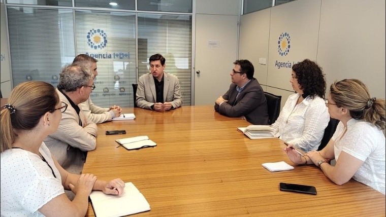 El secretario de Desarrollo Económico y Empleo de la Municipalidad de Rosario, Sebastián Chale, junto a la directora de Innovación, Marina Calleia, mantuvo este miércoles una reunión de trabajo con el presidente de la Agencia Nacional de Promoción de la Investigación, el Desarrollo Tecnológico y la Innovación (Agencia de I+D+i), Fernando Peirano, en la ciudad de Buenos Aires, en el marco del proyecto.