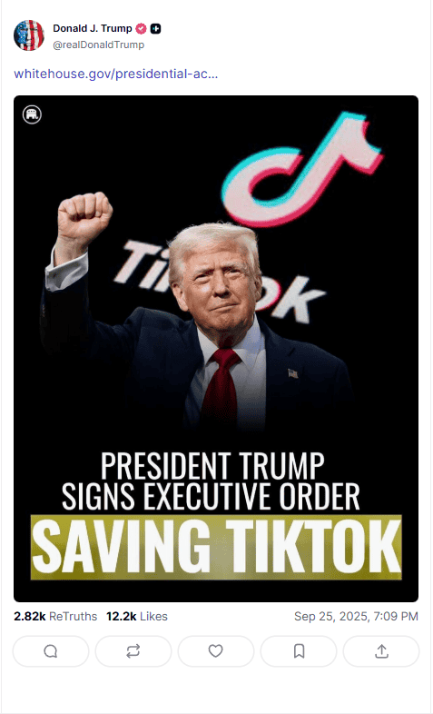 El presidente de Estados Unidos, Donald Trump, firmó la orden ejecutiva que obliga a la empresa china ByteDance a ceder el control mayoritario de las operaciones de TikTok en ese país. La nueva empresa, que se llamará TikTok U.S., tendrá una valoración de 14.000 millones de dólares y estará controlada por un consorcio de inversores norteamericanos. ByteDance conservará menos del 20% de las acciones y solo un asiento en un directorio de siete miembros, sin acceso a comités de seguridad. El gigante tecnológico Oracle, junto a otros nombres de peso como Silver Lake, Rupert Murdoch y Michael Dell, asumirá no solo la propiedad, sino también el control del algoritmo, el sistema de recomendaciones y la moderación de contenido para los 170 millones de usuarios estadounidenses.