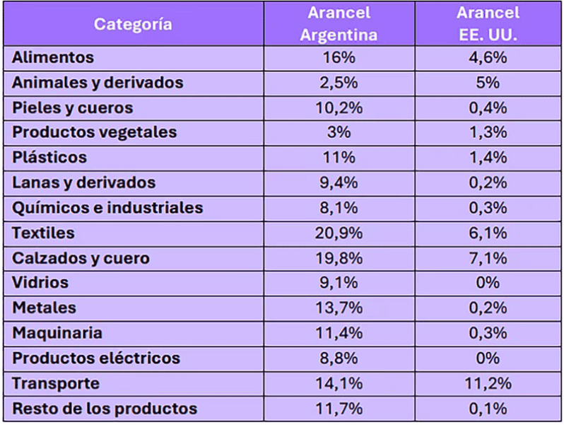 El número es considerable: un informe de la Cámara de Comercio Argentino-Estadounidense (Amcham) había estimado en base a Goldman Sachs que el arancel promedio a los productos norteamericanos era de 6,4%, mientras que la producción argentina que ingresaba en los Estados Unidos pagaba 1,2 por ciento.