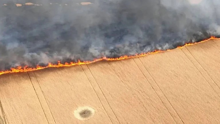 El Ministerio de Defensa de Ucrania publicó una imagen este viernes en la que se ve cómo el fuego arrasa un campo sembrado y responsabilizó a Rusia por la crisis alimentaria mundial.
