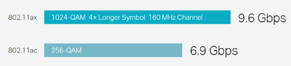 Este avance que se consigue es gracias, en parte, a su modulación 1024-QAM, lo que permite que en un determinado ancho de banda se pueda enviar más cantidad de información por símbolo que con los protocolos WiFi anteriores.
