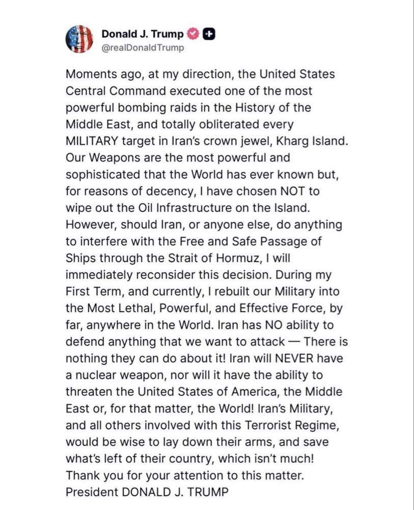 Mientras el sol despunta sobre las terminales portuarias del río Paraná y las maquinarias de la región encienden sus motores para una nueva jornada productiva, en el otro extremo del planeta se reconfigura el tablero económico global. La confirmación de un operativo militar a gran escala por parte de Estados Unidos sobre objetivos estratégicos en la isla de Kharg, el principal puerto de exportación petrolera de Irán, ha enviado ondas de choque a través de los mercados financieros. La particularidad de esta acción, según las propias declaraciones de la administración estadounidense, radicó en una decisión calculada: aniquilar la capacidad militar preservando intacta la infraestructura petrolera. Este nivel de precisión quirúrgica no responde únicamente a tácticas bélicas, sino a una profunda comprensión de la gestión de riesgos macroeconómicos a escala global.