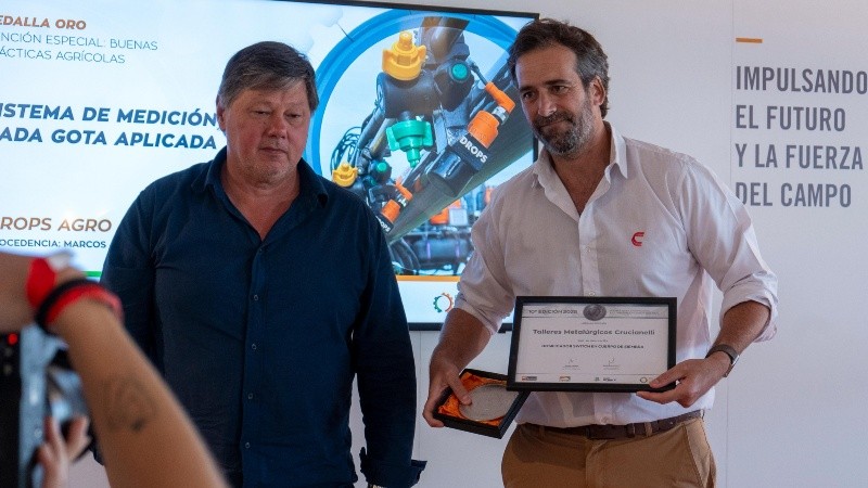 La consagración de las estructuras fabriles consolidadas también tuvo su merecido lugar, confirmando que la rentabilidad agrícola se defiende con el rediseño constante de los fierros tradicionales. Talleres Metalúrgicos Crucianelli arrasó al obtener la tercera Medalla de Oro de la jornada y una mención en Buenas Prácticas Agrícolas por su avanzado sistema de dosificación y distribución para fertilizadora neumática, sumando además una Medalla de Plata por su dosificador Switch en cuerpo de siembra. El equipo de fertilización premiado utiliza una cinta transportadora que estabiliza el flujo de material a velocidades inusuales de 24 kilómetros por hora y dosis de 400 kilos por hectárea, logrando reducir sustancialmente el consumo de un fertilizante carísimo al mitigar su volatilización. El CEO de la fabricante de Armstrong, Gustavo Crucianelli, confesó abiertamente: “Es un orgullo grande y nos motiva a seguir. Es como esa palmadita en la espalda que te daba tu papá cuando hacías algo bien de chico. Nos incentiva a redoblar la apuesta porque queremos seguir innovando”.