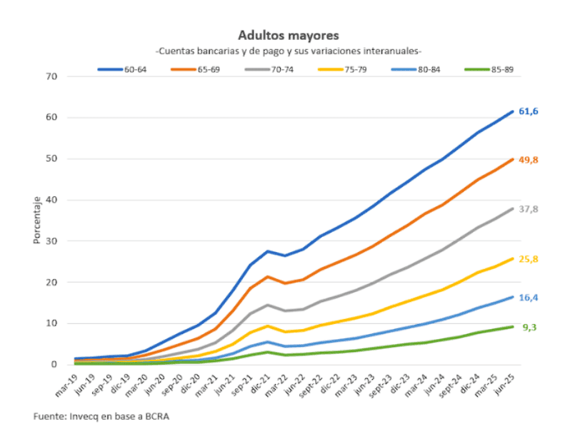 La adopción de herramientas digitales para la gestión del dinero está creciendo con fuerza en este grupo de argentinos. Según datos del Banco Central, los jubilados fueron el grupo social que más incrementó el uso de transferencias y pagos digitales en el último año. Mientras que el total de nuevos titulares de billeteras virtuales creció 13% entre junio de 2024 y junio de 2025, el segmento de personas mayores a 60 aumentó más del doble: 29,7% en ese mismo período.