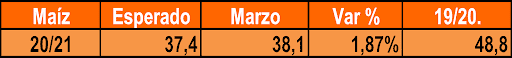 En otro orden, un evento de corto plazo que puede influir en el mercado de mayor liquidez mundial tiene que ver con la intención de siembra en EEUU que se va a publicar a finales de este mes; en caso de que no se verifique un salto en el área de aproximadamente 3 mill has (tal como fue proyectado en el Outlook Forum), esto fortalecerá la posición noviembre (primer vencimiento del ciclo 21/21) pero indirectamente beneficiará a las del período en curso.