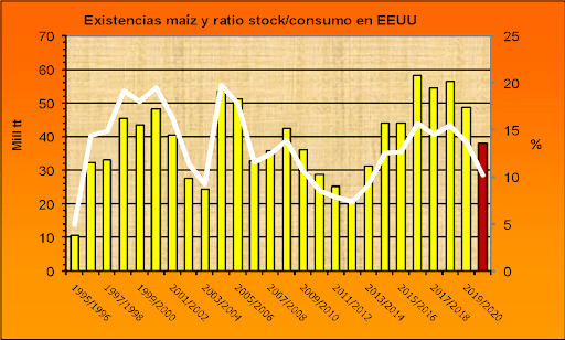 El reporte del USDA ha resulta ligeramente negativo para el maíz norteamericano, tomando en cuenta que las existencias divulgadas por el organismo han sido algo mayores a lo previsto por los privados.