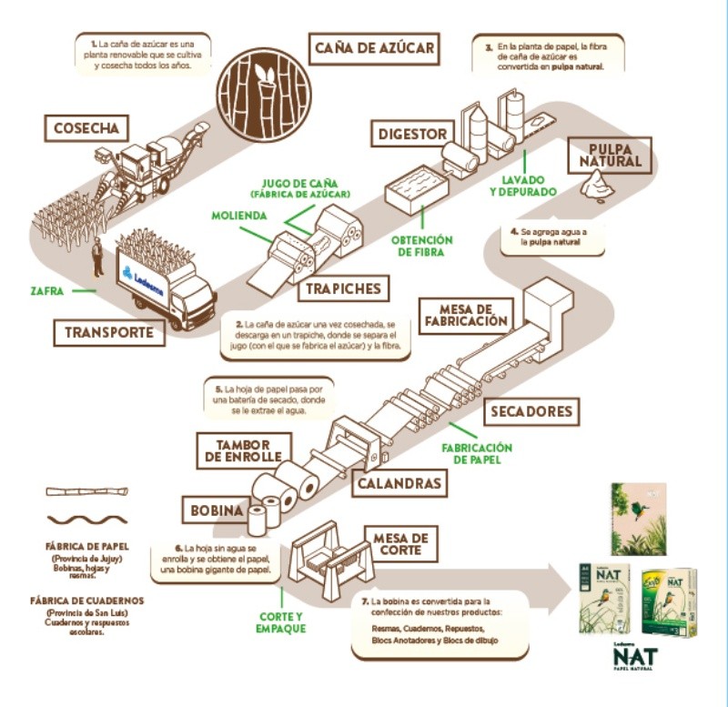 Ledesma es una empresa agroindustrial argentina que cuenta con 115 años de historia y es líder en producción tanto de azúcar como de papel. Desde hace casi 60 años, utiliza la fibra de caña para fabricar el papel y convertirlo en resmas, cuadernos, repuestos escolares, entre otros productos.