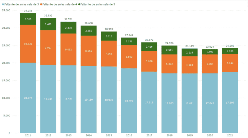 Aunque en los últimos años se ha avanzado en la construcción de aulas para jardín de infantes, aún se necesitan al menos 24.202 nuevas secciones para garantizar la cobertura en las salas de 3, 4 y 5. El mayor déficit se encuentra en sala de 3, donde hacen falta 17.399 aulas; mientras que en las salas obligatorias la deuda es menor: faltan 5.144 aulas en sala de 4 y 1.659 en sala de 5. Esta cuenta pendiente impide que todos los niños y niñas argentinos aprovechen los múltiples beneficios de la asistencia al nivel inicial.