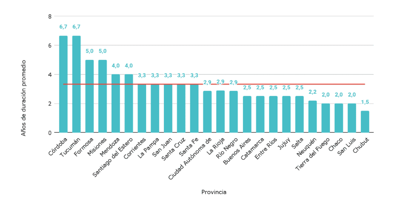 Los ministros de Educación provinciales tuvieron un promedio de 3,3 años de duración en el cargo en los últimos 20 años. La cifra es superior al promedio de 2,8 años de duración de los ministros de Educación nacionales entre 2003 y 2023, pero inferior a los 4 años de mandato previstos para los gobernadores y el jefe de Gobierno de CABA. Desde 2003 han pasado en total 167 autoridades educativas en las 24 jurisdicciones del país.
