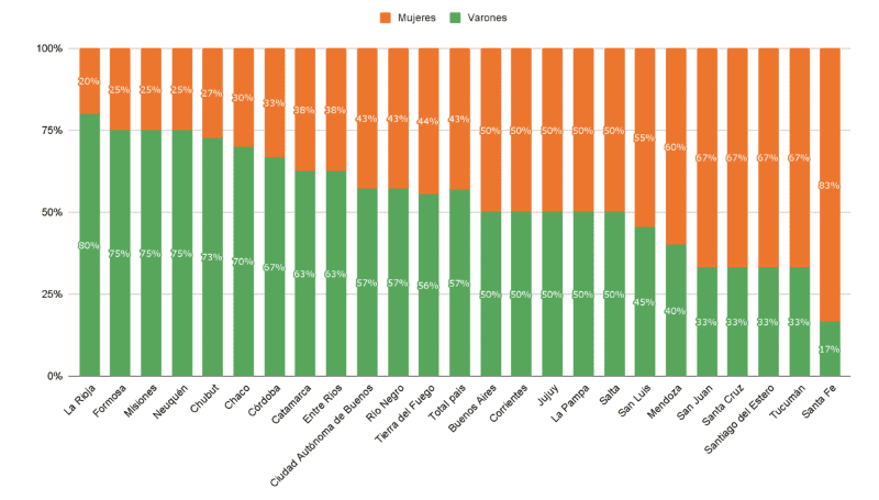 El 56,9% de los ministros provinciales han sido varones y el 43,1%, mujeres. La cifra contrasta con el alto nivel de feminización de la profesión docente: el 94,6% de docentes de escuela primaria son mujeres, así como el 66,6% de directores de escuela secundaria. En otras palabras, la participación de las mujeres en cargos públicos de decisión es mucho menor que la que tienen en el sistema educativo.