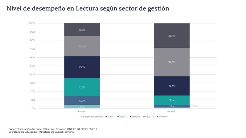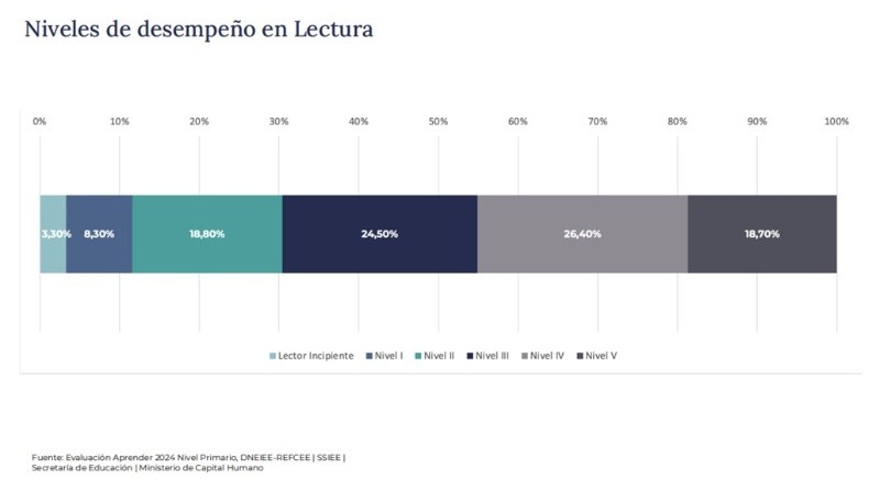 Uno de los apartados contemplados durante las pruebas, que tienen el objetivo de “diagnosticar las habilidades lectoras” de los estudiantes al terminar el primer ciclo de primaria, arrojó la calificación de “lectores incipientes” para un 3,3% de los alumnos, lo que implica que estaban apenas iniciándose en la lectura de oraciones y solo podían leer palabras cuando estaban acompañadas de una imagen representativa.